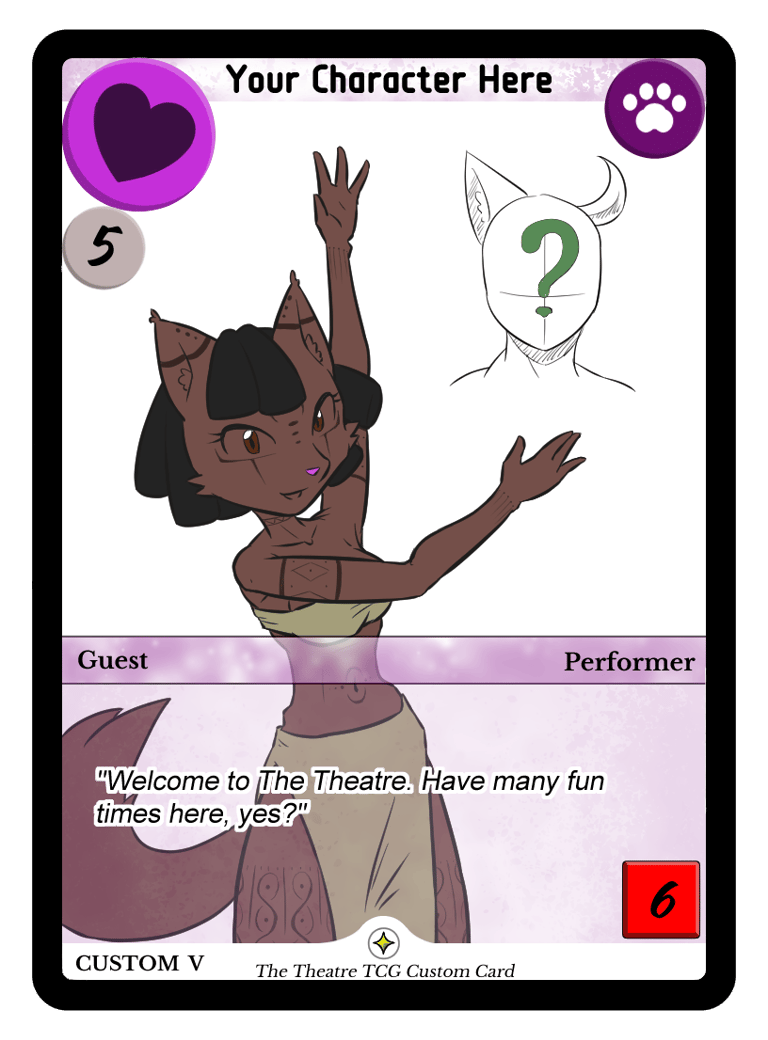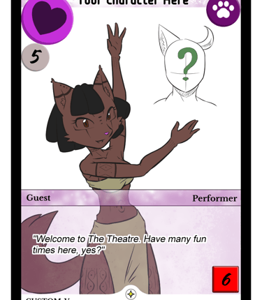 A limited set of promotional cards with characters from the community, playtesters, and general fans is currently being filled out, with contests being held to get a free full art card featuring your own character - and these will be fully official and playable in a real game of The Theatre!